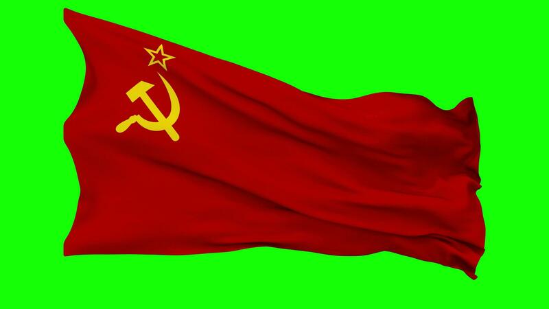 Soviet Union Flag Waving Seamless Loop in Wind, Chroma Key Green Screen, Luma Matte Selection Free Video