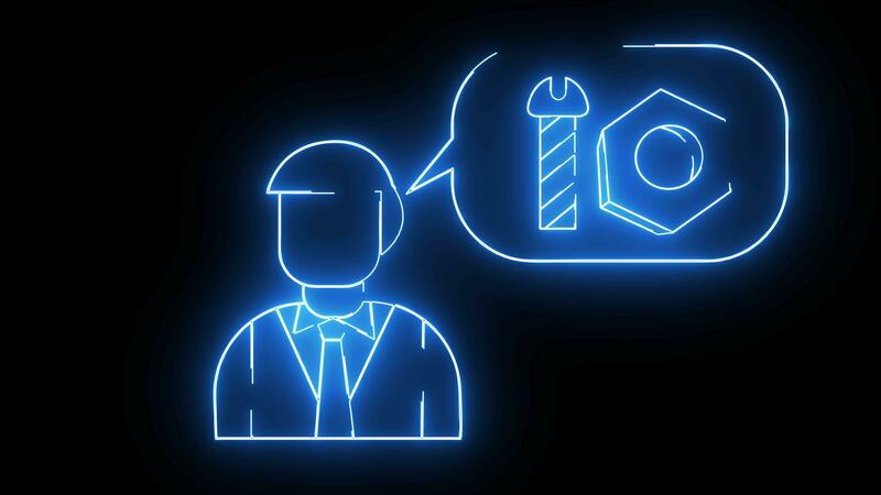 animated sketch of a man and a sketch of a bolt nut with a glowing neon saber effect Free Video