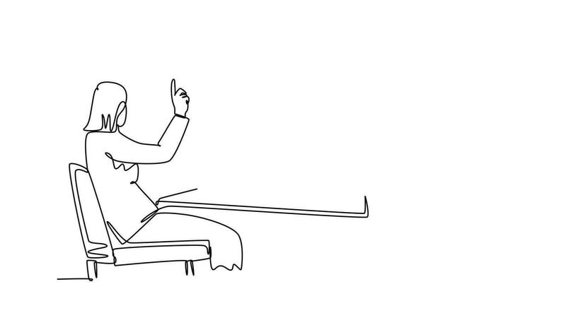 Self drawing animation of single line draw young happy business instructor teaching interpersonal skill to attendees during presentation. Business training. Continuous line draw. Full length animated Pro Video