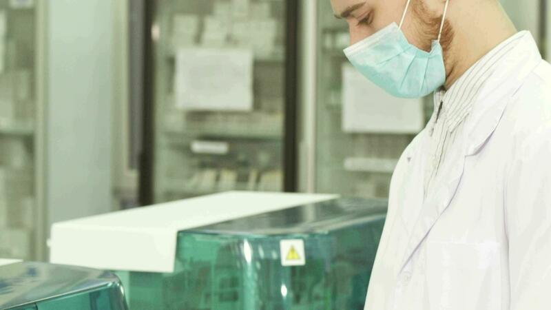 A close-up and smooth transition of the camera from the head to the hands of the lab technician who records the analysis results Free Video