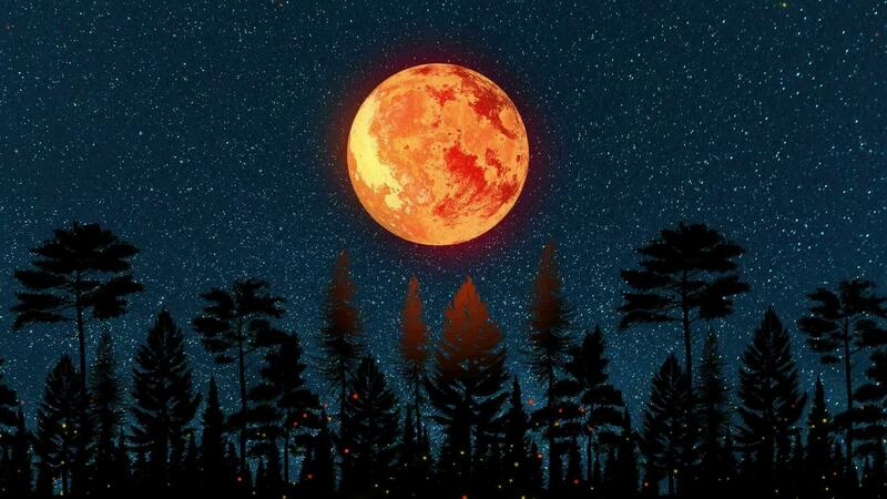 Crescent Night Moon Through Parallax Forest, A Full Moon Over a Forest with Trees Free Video