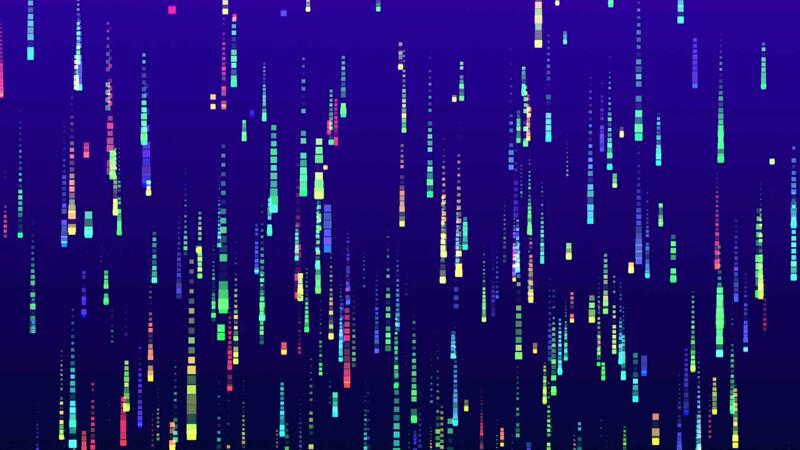 Abstract color animation of falling geometric shapes, squares. Particle flow or particle rain. Digital background. Seamless looping. Pro Video