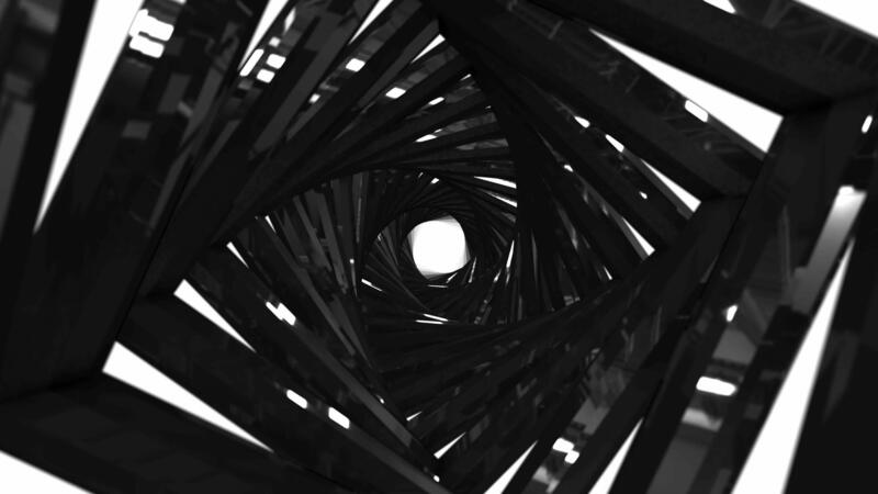 Metal tunnel with soft light reflections. Tunnel with mirror reflection. Abstract animated background. Futuristic dark background Pro Video