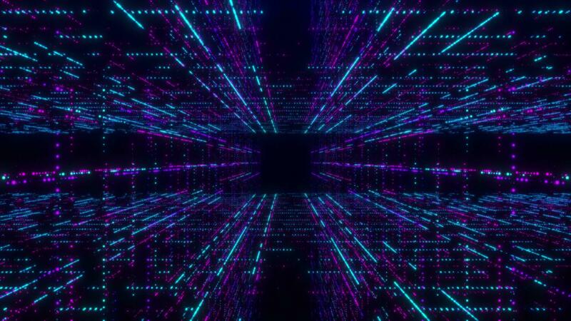 Digital cyberspace with particles and digital data network technologies. Abstract futuristic cyber world scene, technology glowing surface, digital science background 4K animation Pro Video