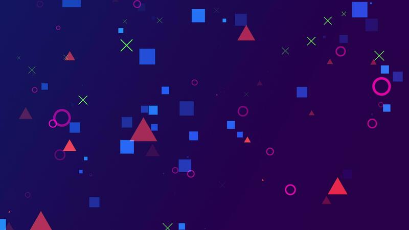 Colorful modern background design with geometric shapes. Digital squares, triangles and circles on a gradient background. Seamless loop Pro Video