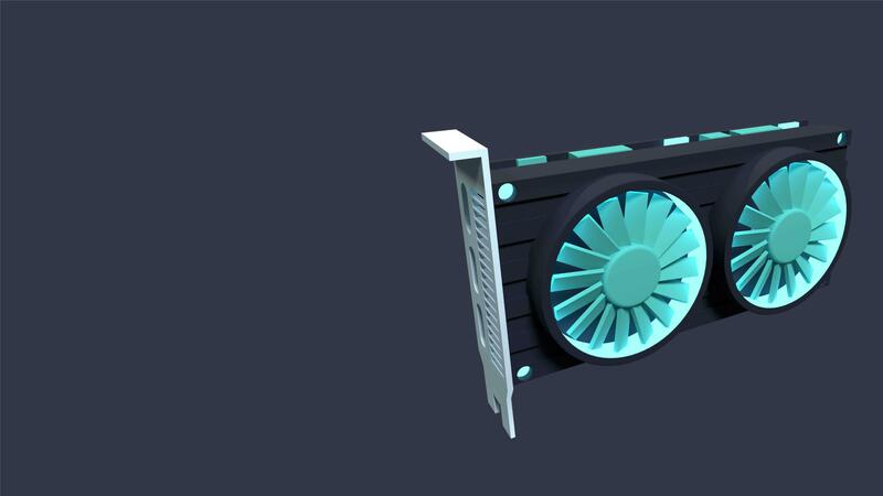 Dual fan graphics card animation. Computer component icon. 3D render video card Pro Video