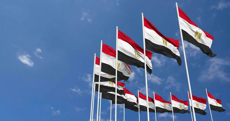 Egypt Flags Waving in the Sky, Seamless Loop in Wind, Space on Left Side for Design or Information, 3D Rendering Free Video