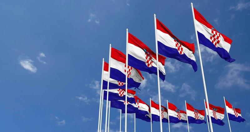 Croatia Flags Waving in the Sky, Seamless Loop in Wind, Space on Left Side for Design or Information, 3D Rendering Free Video