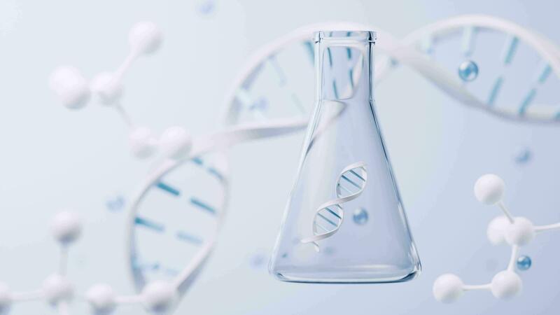 Conical flask and biological concept background, 3d rendering. Pro Video