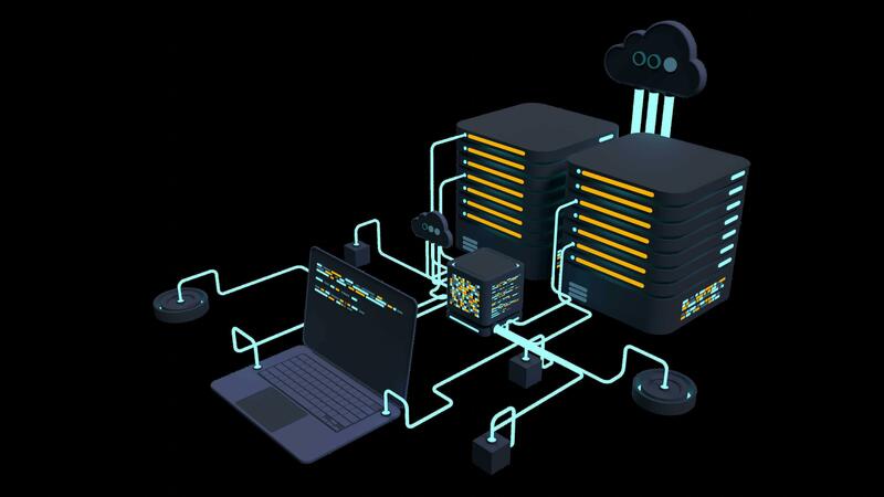 Computer technology 3D animation. Computation of big data center. Cloud computing. Online devices upload and download information. Transparent background with alpha channel Pro Video
