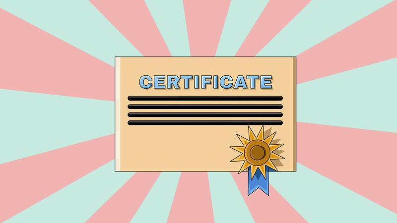 Animation of a certificate paper icon with a rotating background Free Video