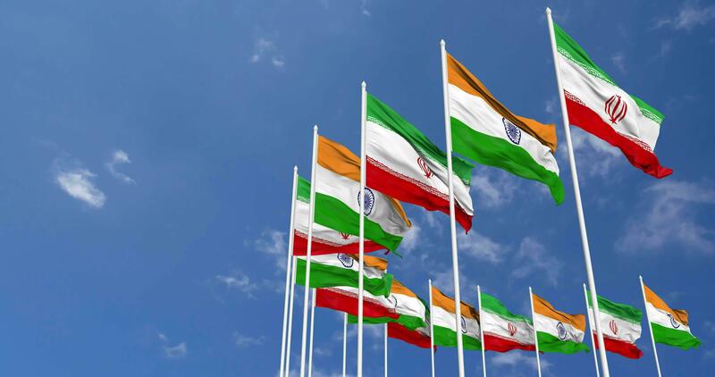 India and Iran Flags Waving Together in the Sky, Seamless Loop in Wind, Space on Left Side for Design or Information, 3D Rendering Free Video