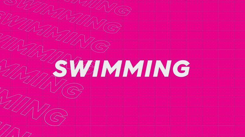 Swimming pink creative promotion program broadcast sport design. Promo title page dynamic animation loop. Rows intro stream up attractive show screen seamless background card. Pro Video