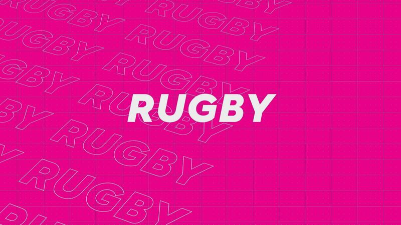 Rugby pink creative promotion program broadcast sport design. Promo title page dynamic animation loop. Rows intro stream up attractive show screen seamless background card. Pro Video