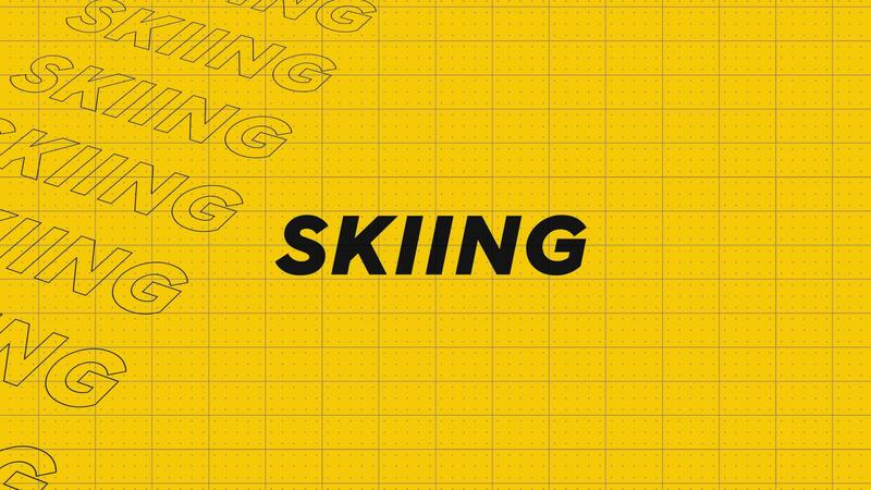 Skiing yellow orange creative promotion program broadcast sport design. Promo title page dynamic animation loop. Rows intro stream up attractive show screen seamless background card. Pro Video