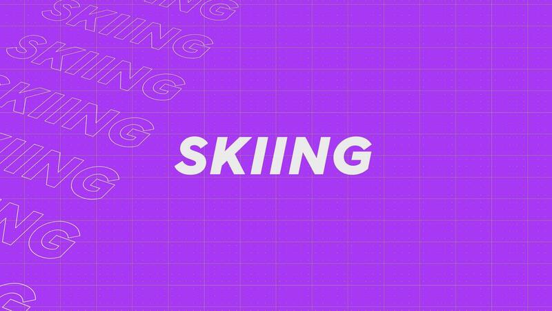 Skiing violet promo title page dynamic animation loop. Rows intro stream up attractive show screen seamless background card. Creative promotion program broadcast sport design. Pro Video
