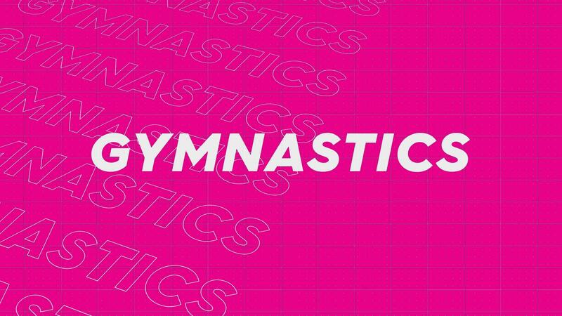 Gymnastics pink creative promotion program broadcast sport design. Promo title page dynamic animation loop. Rows intro stream up attractive show screen seamless background card. Pro Video