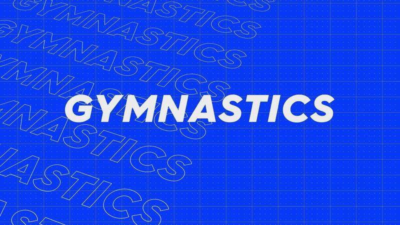 Gymnastics blue rows intro stream up attractive show screen seamless background card. Creative promotion program broadcast sport design. Promo title page dynamic animation loop. Pro Video