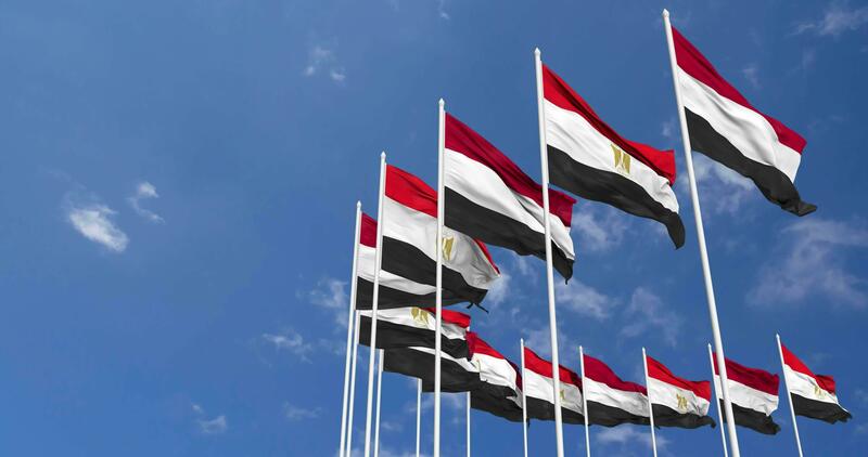 Egypt and Yemen Flags Waving Together in the Sky, Seamless Loop in Wind, Space on Left Side for Design or Information, 3D Rendering Free Video