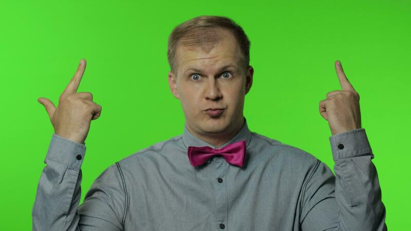 Man is mind blowing by your statement on chroma key background. Showing explosion of ideas Pro Video