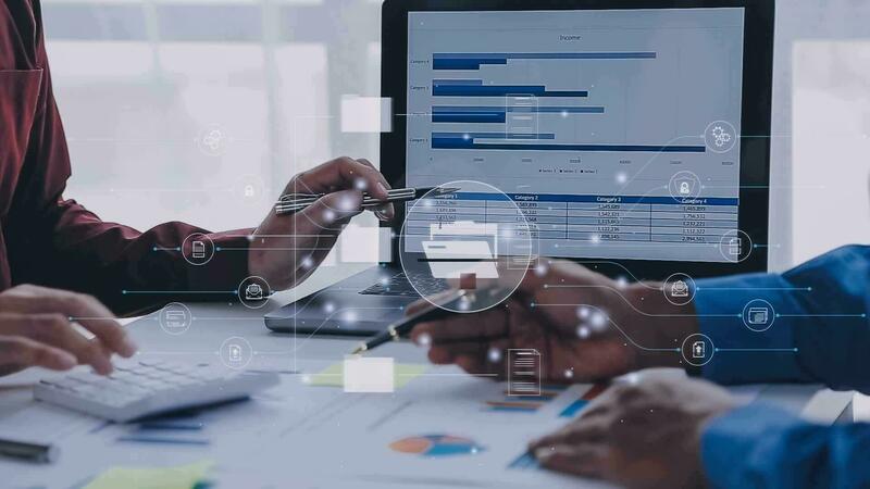 online document Document management system business process automation technology. businessman wroking with document icon on virtual screen. File storage and archiving. ERP. Folder structure. Free Video