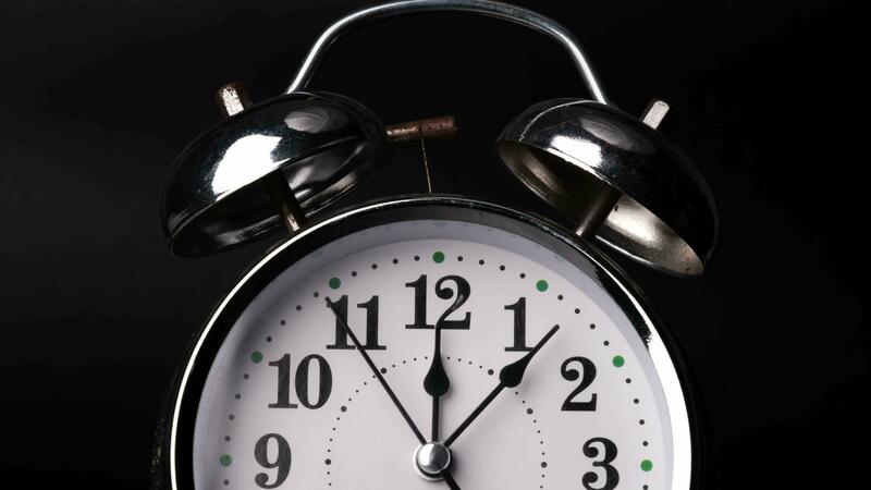 Close-up of a retro alarm clock face in time lapse on black background. Retro alarm clock running fast. Clock hands move fast, the beginning of time Pro Video