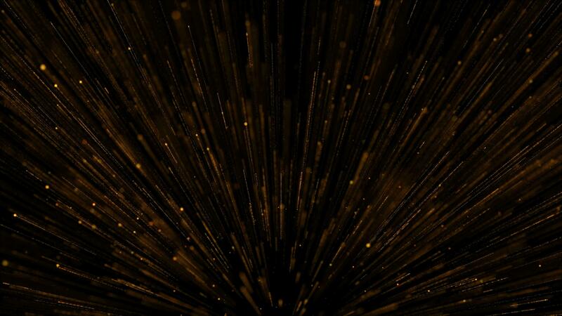 A sparkling explosion of golden particles and trails against a black background in a seamless loop. Free Video