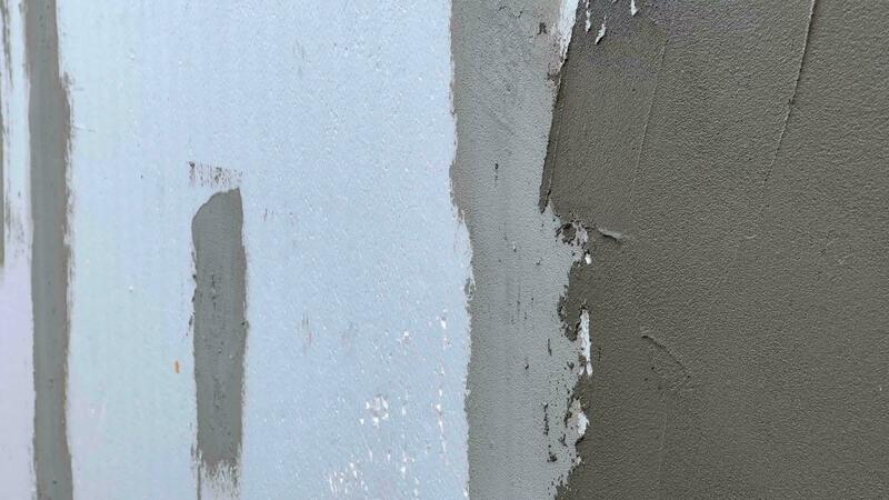 Hand with a putty knife, apply the putty to the wall. Process of applying a layer of putty. A man plasters the facade after insulating the building with polystyrene. Concept of construction. Free Video