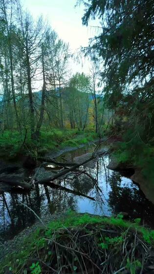 Smooth flight between the trees close to branches in the mystical autumn forest. Pro Video