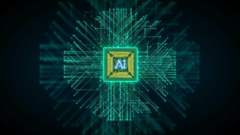 AI-powered Arm CPU Circuit board. Central Computer Processors concept Technology background. Pro Video