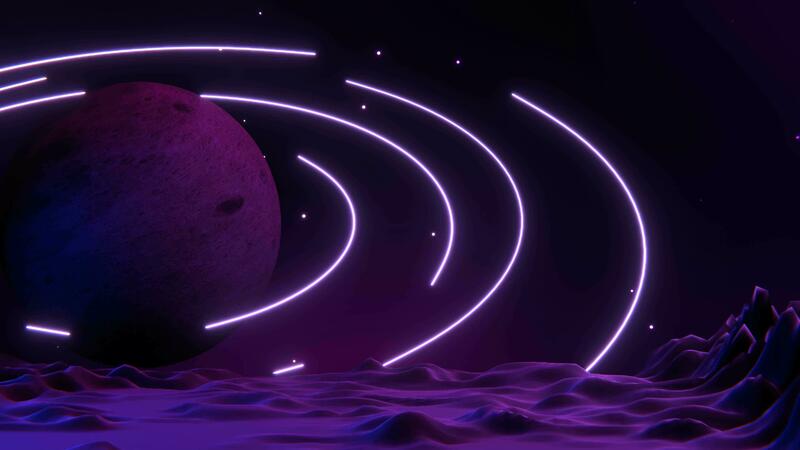 animation of moon with glowing rings, seamless loop, space background video Free Video