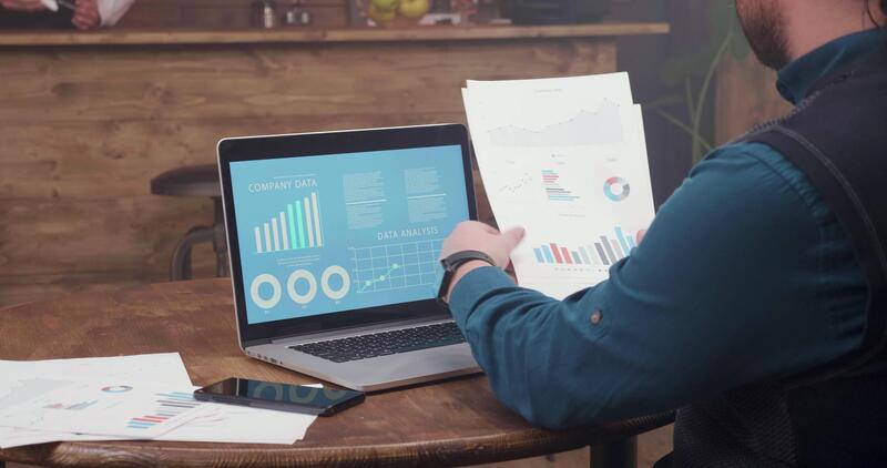 Man checking the analytic charts and data reports of his company. Young businessman preparing for a meeting and sorting the information. Pro Video
