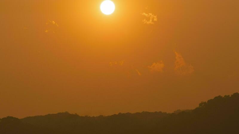 Time lapse of the sun setting over hills that are covered with clouds, in the style of smokey background. Free Video