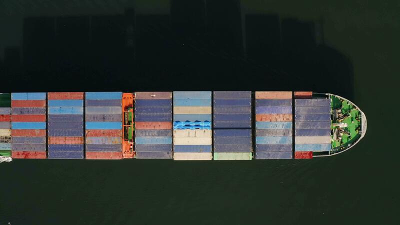 Aerial. top view of a container ship with a cargo of container Pro Video