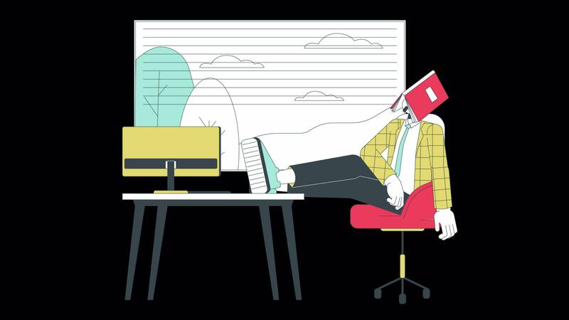 Doing bare minimum at work line cartoon animation. Quiet quitting 4K video motion graphic. Low-engagement worker putting feet on table 2D linear animated character isolated on transparent background Pro Video