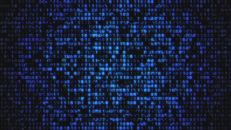 Realistic CRT Monitor styled blue binary code motion background animation with digital glitch effect. This retro technology background is full HD and a seamless loop. Free Video