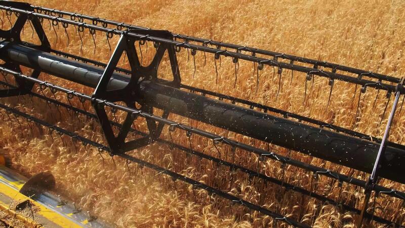 The combine harvester of an agricultural machine harvests from a field of golden ripe wheat.A combine harvester is working in a wheat field.The combine moves across the field and mows wheat Pro Video