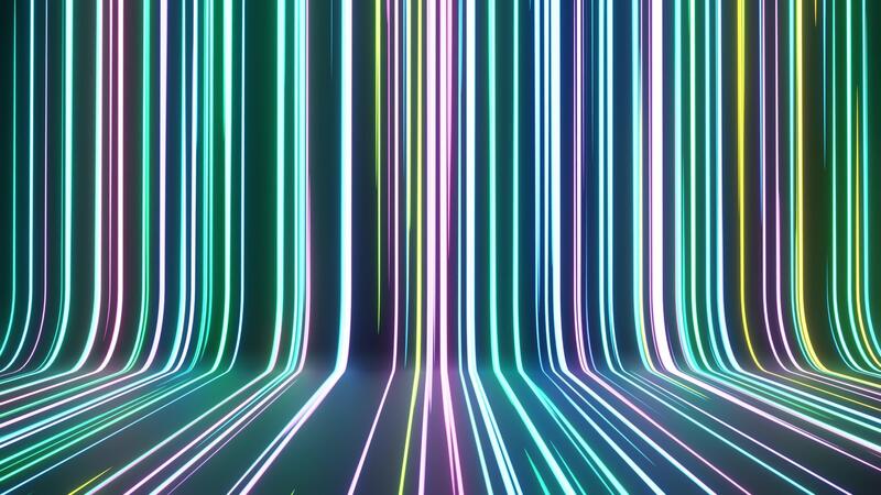 Moving neon lights in colorful lines glow in dark ways, bright and striped abstract patterns with green, purple and blue glow. Future technology background with scrolling at the speed of light. Free Video