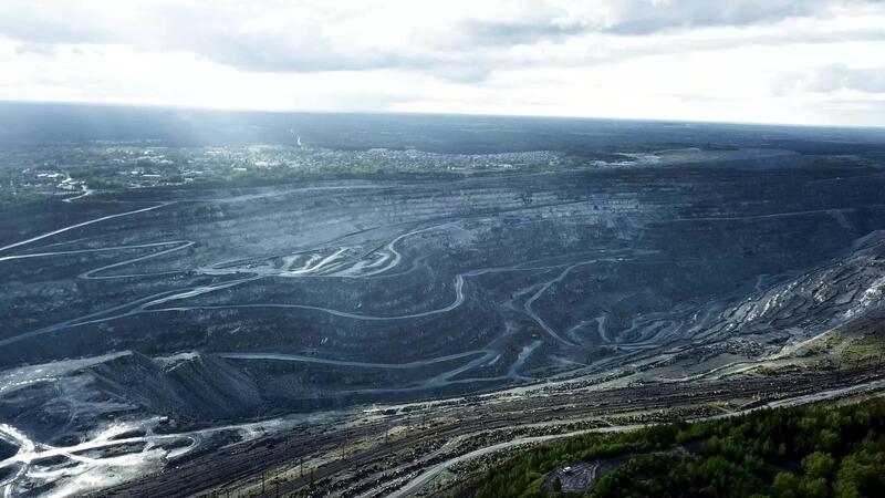 Huge quarry for limestone mining, top view, panorama. Mining industry. Top view of a huge quarry for stone mining Pro Video