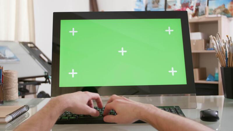 Pov shot of a designer working on a new artistic project. Artists point of view working on a computer. Pro Video