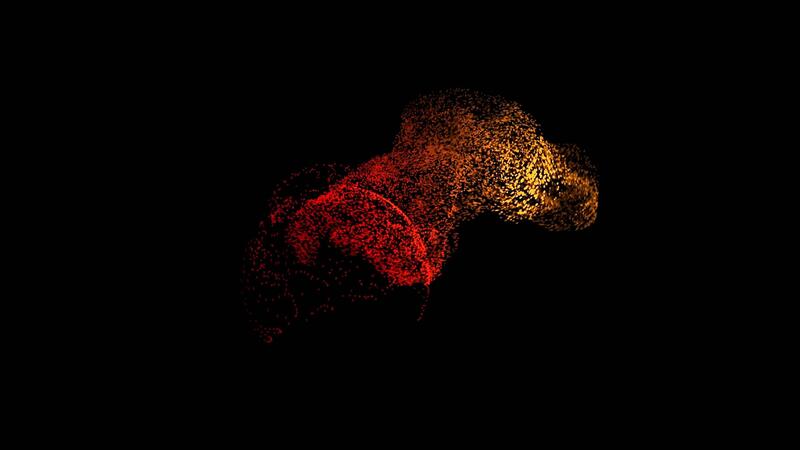 Colored dots moving in space creating shape. Animation. Abstract animation of moving multicolored dots on a black background Pro Video