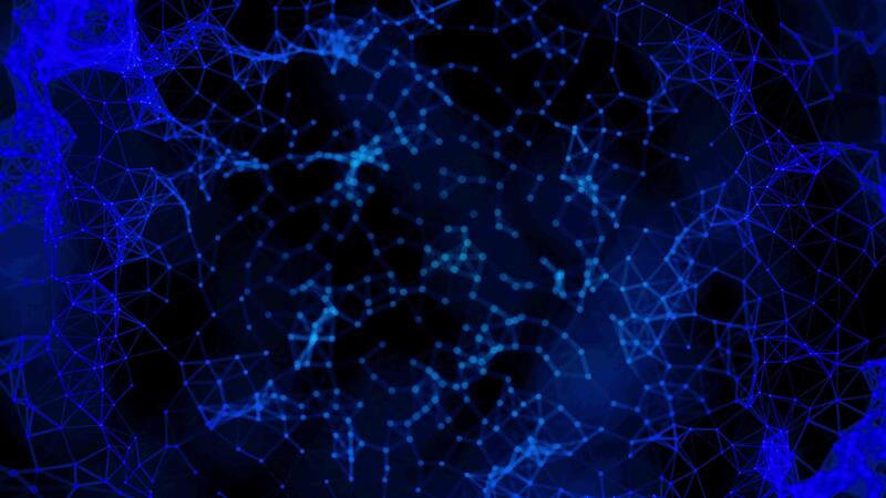 Abstract neural connections on black background. Animation. Moving chains or connections of points and lines of triangular shapes Pro Video