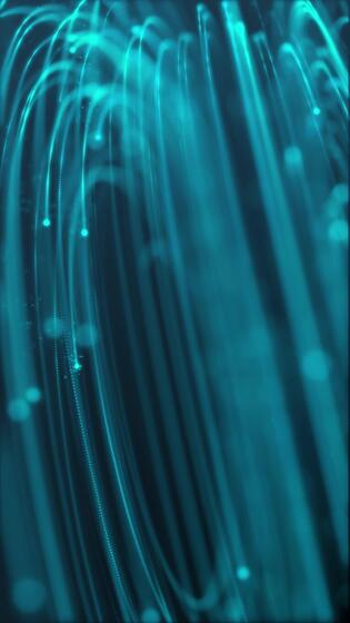 Vertical video - digital data stream technology motion background animation with a fast moving stream of flowing green fiber optic light data nodes and particles. Free Video