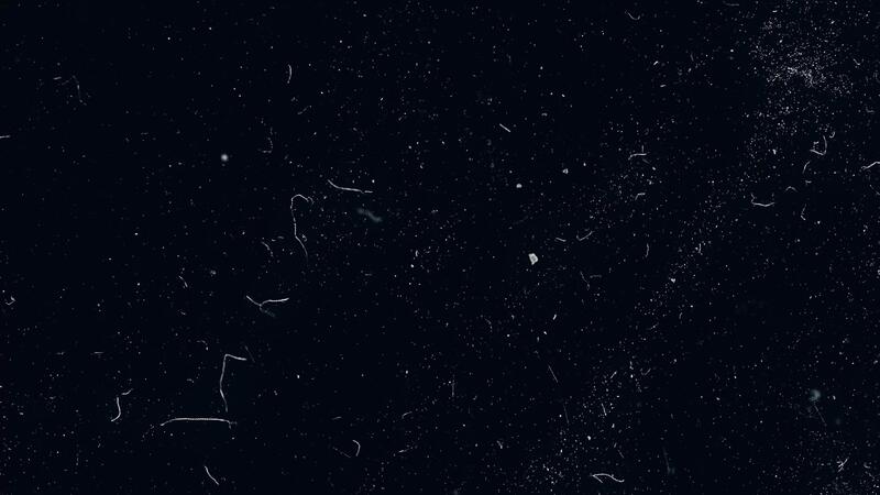 Slow motion macro shot of dust particles over black background. White dust particles moving slowly in space on black background. Abstract particle moving background. Slow motion macro dust particles Pro Video