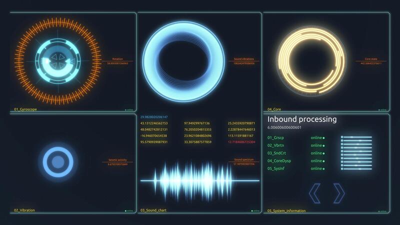 Futuristic interface. Digital screen. Ultra detailed abstract digital background. Blinking and switching indicators and statuses showing work of command center,processing big data, machine deep Pro Video