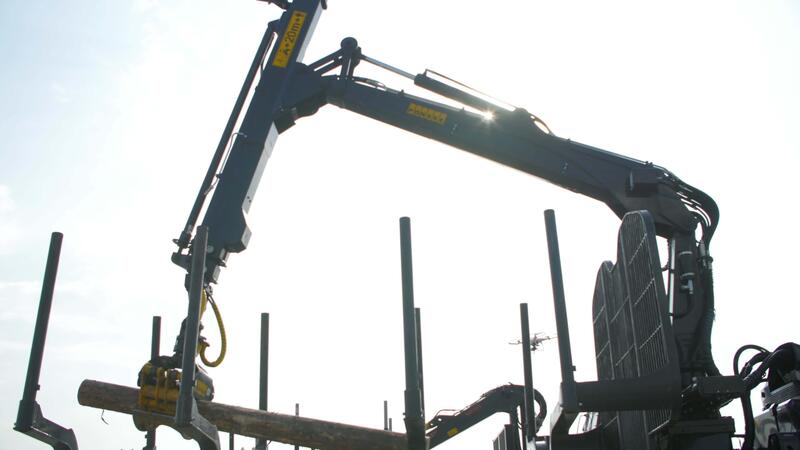 Heavy equipment loading with clipper cut logs. Large log loader and operations in the log yard at a conifer log Pro Video