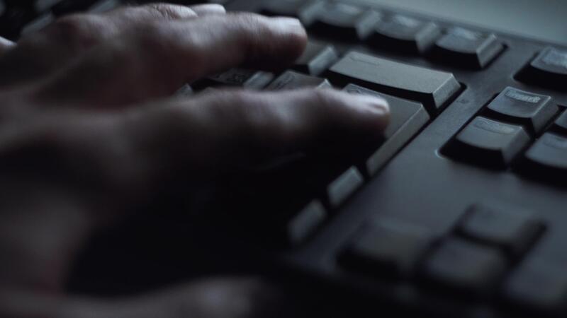 Pressing key with your finger. Closeup of male finger presses button on black computer keyboard. Man nervously presses enter button to send documents for work Pro Video