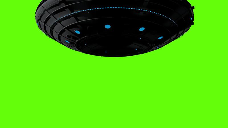 UFO flying round spaceship opening bottom hatch with small fighter ship emerging from inside against green background. 3D animation Free Video