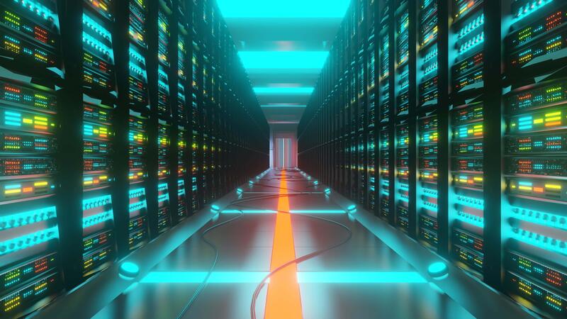 Server room in data center full with PC racks. Slider up move. 3D render animation Pro Video