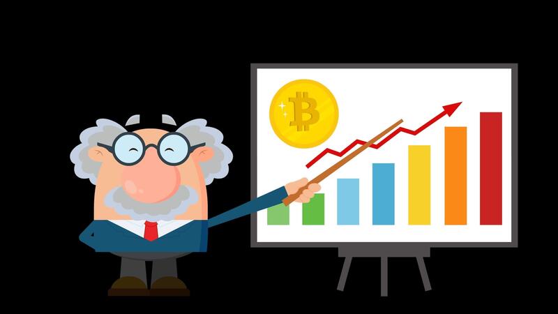 Professor Or Scientist Cartoon Character With Pointer Discussing Bitcoin Growth With A Bar Graph. 4K Animation Video Motion Graphics Without Background Pro Video